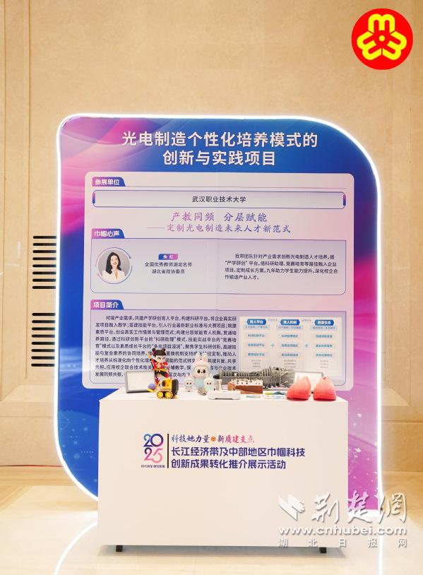 荆楚网(湖北日报网)讯(记者何鹏 通讯员刘岩奇)11月14日,“2025年长江经济带及中部地区巾帼科技创新成果转化推介展示活动”在湖北武汉举行。武汉职业技术大学智能制造学院院长朱红教授主持的“光电制造个性化培养模式的创新与实践”成果受邀参展,凭借鲜明的育人特色与扎实的实践成效,成为展会焦点,受到广泛关注。