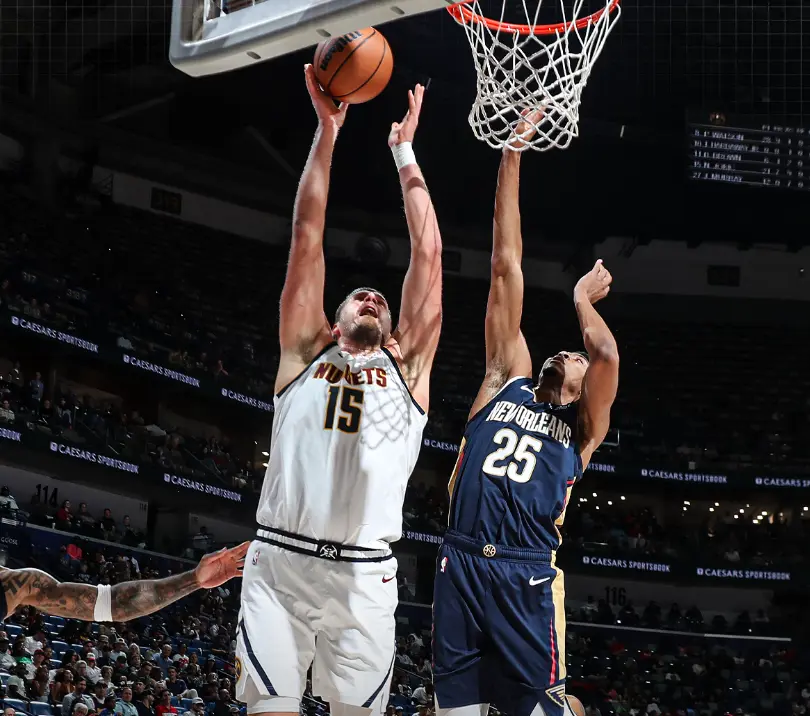 掘金在今天的比赛中对阵鹈鹕,尽管两队之间实力差距巨大,但是这场比赛鹈鹕是带给了掘金巨大的麻烦,尽管这场比赛掘金虽然一度领先到了两位数,不过第四节比赛约基奇是早早6犯下场,之后在奎因等人发挥下鹈鹕硬是追近比分,关键时刻穆雷给予回应,最终掘金是有惊无险的赢下比赛胜利,约基奇也在比赛中险些拿下28分11篮板12助攻9失误的尴尬四双数据。掘金赢球后排在西部第二的位置,鹈鹕输掉比赛后已经是遭遇7连败,这样鹈鹕也排在西部倒数第一的位置。
