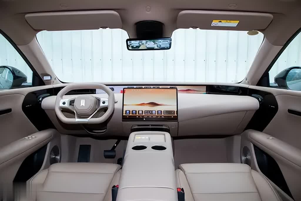 进入车内,阿维塔07的座舱氛围延续了外观的未来主义风格,同时通过材质与工艺营造出柔和豪华的感受。中控台采用环抱式布局,