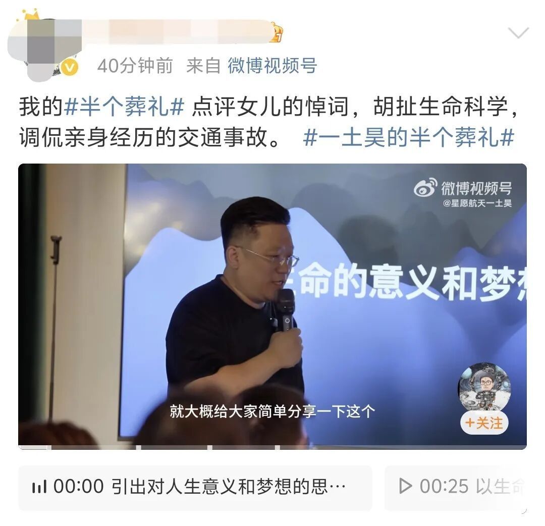 据当事人社交平台显示,男子还在“葬礼”上点评女儿的悼词,调侃自己亲身经历的交通事故。