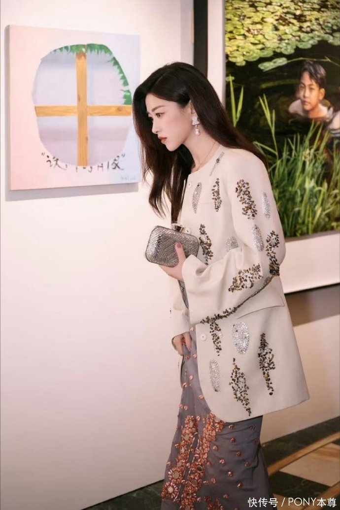 米色新中式外套+长裙,妩媚风情!除了红毯上的复古造型,朱珠在另一活动中的穿搭同样令人眼前一亮。她身穿米色新中式钉珠外套,内搭长款紫色纱质礼服裙,长发披肩,气质温婉动人,即便与章泽天同框,也依旧凭借独特的韵味更显端庄,将妩媚风情与优雅气质完美融合。