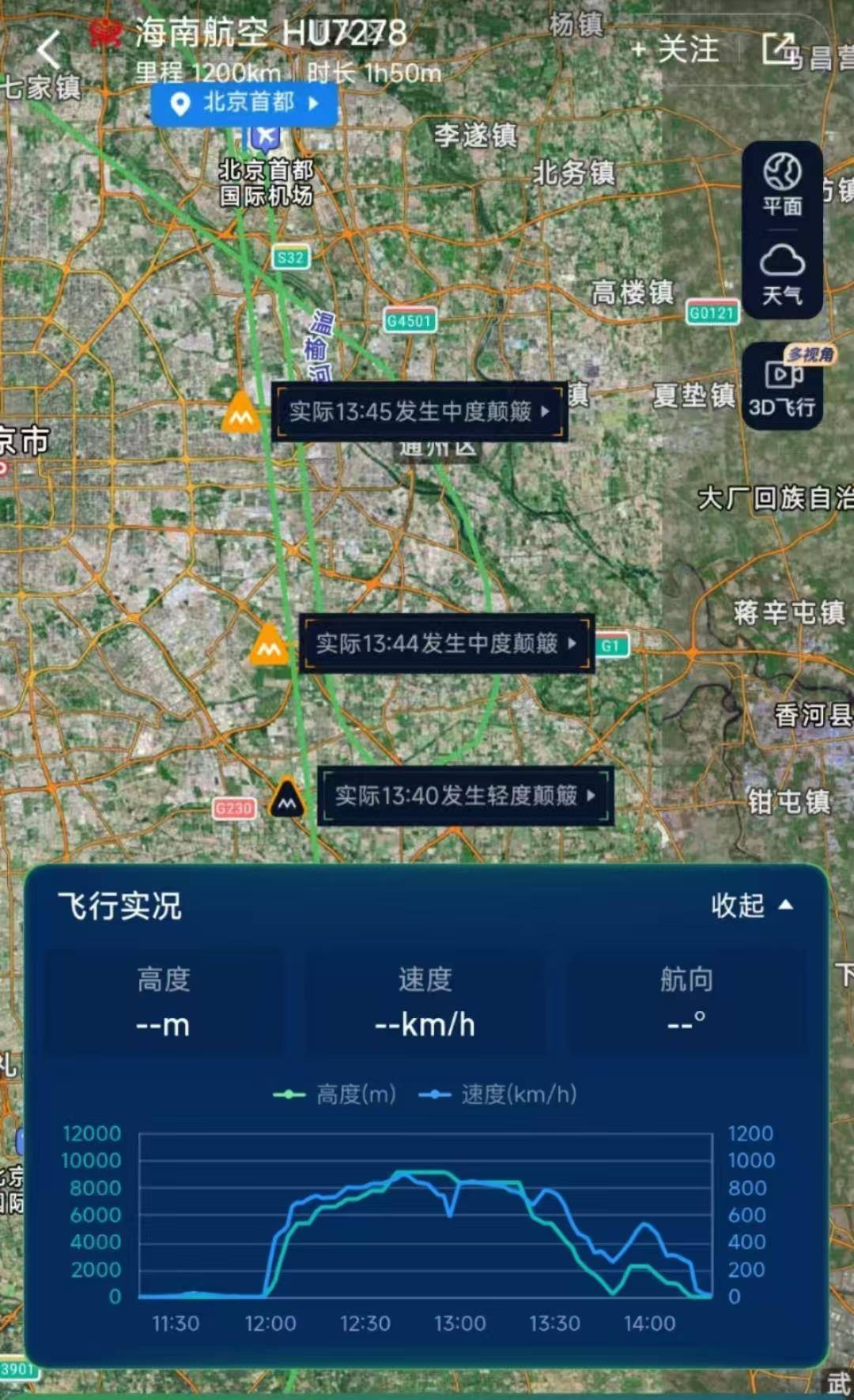 据“航旅纵横”显示,飞机在飞行中出现多次轻度、中度颠簸情况。据飞行实况图,飞机在降落过程中出现高度再次抬升的情况。据北京气象部门16日早晨发布的信息,16日白天阵风可达七级至八级,t9时15分,北京气象台升级发布大风黄色预警信号。